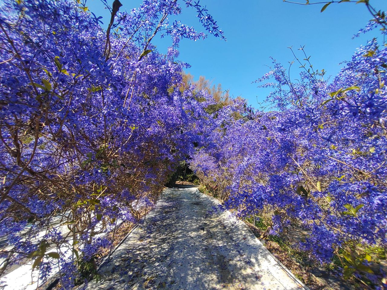 2025埔里鎮山宮鍚葉藤綻放中,賞花好時機!南投賞花好去處埔里鎮山宮鍚葉藤綻放啦,初春也有浪漫的紫色夢幻,鍚葉藤隧道好迷人,埔里鎮山宮鍚葉藤的花期落在每年的2-4月份,南平山道田有機農場的鍚葉藤雖說花區佔地不大,但每到花季時,仍然吸引許多旅人取景玩拍,有來埔里鎮山宮拜拜的旅人,也能順遊賞花,再搭配南投埔里景點一日遊,更充實旅程。